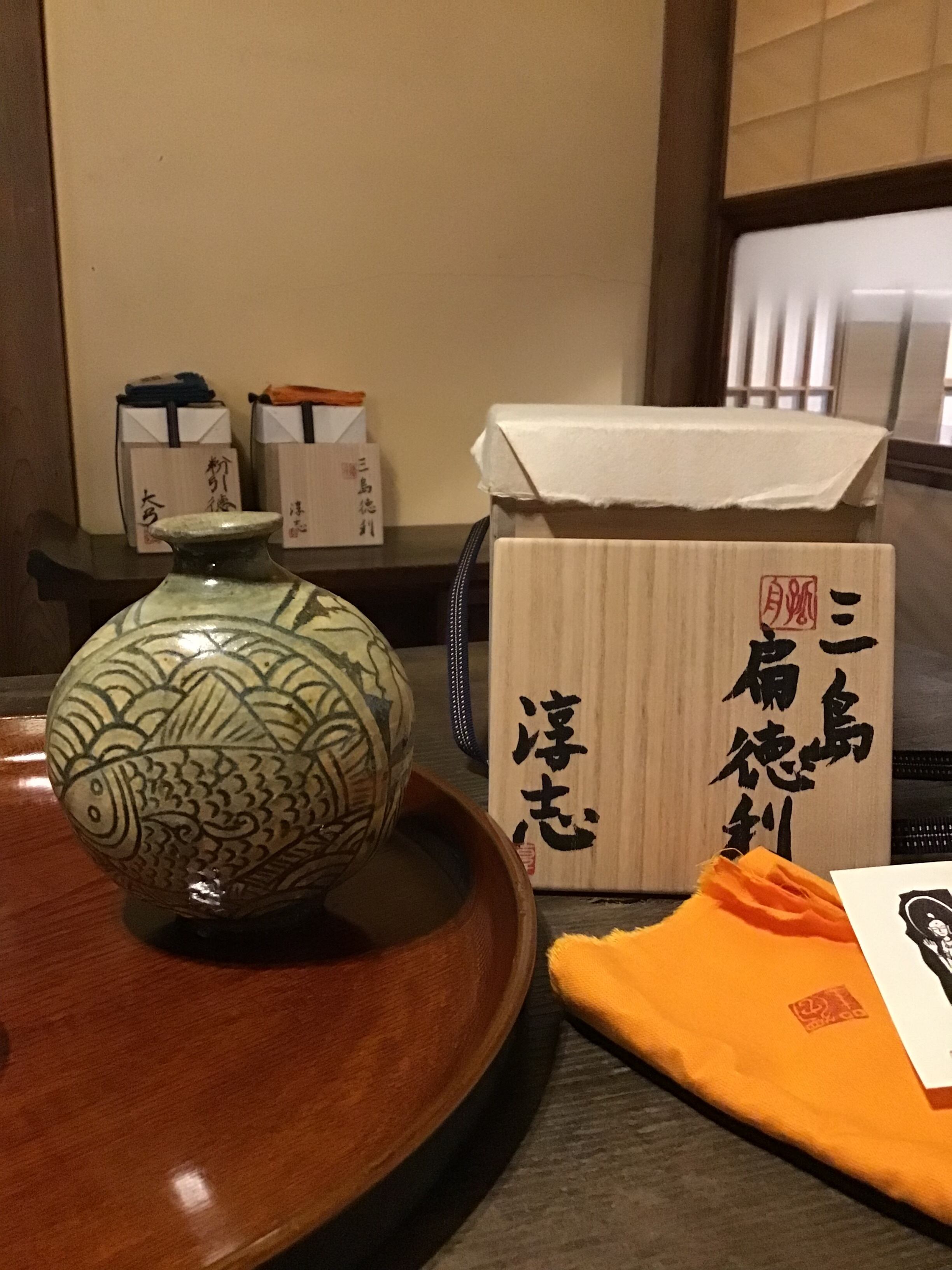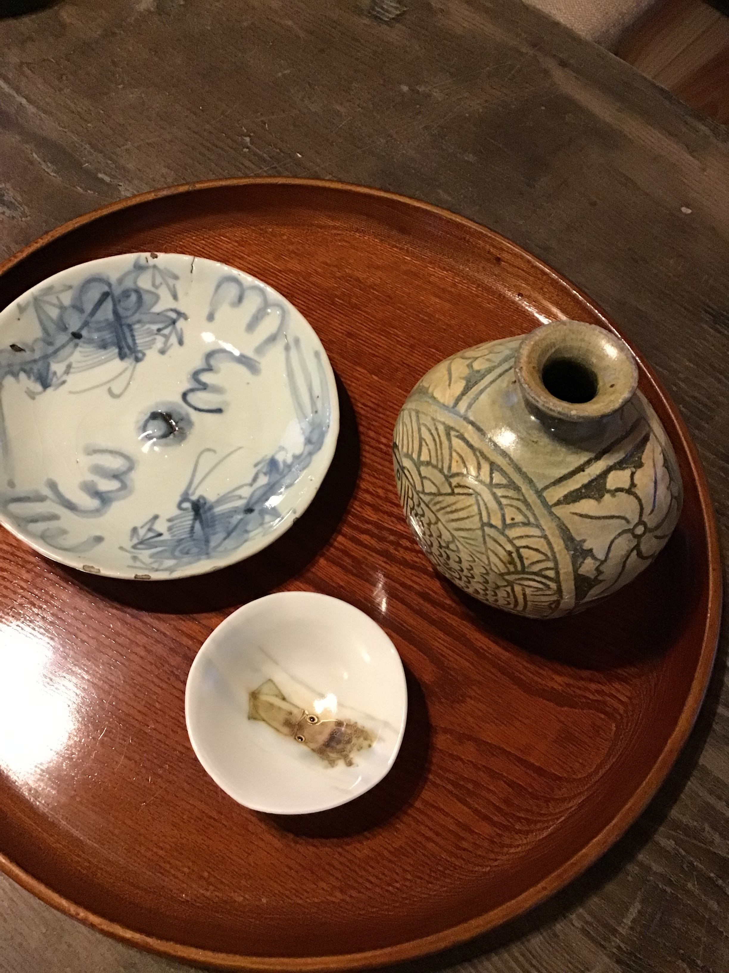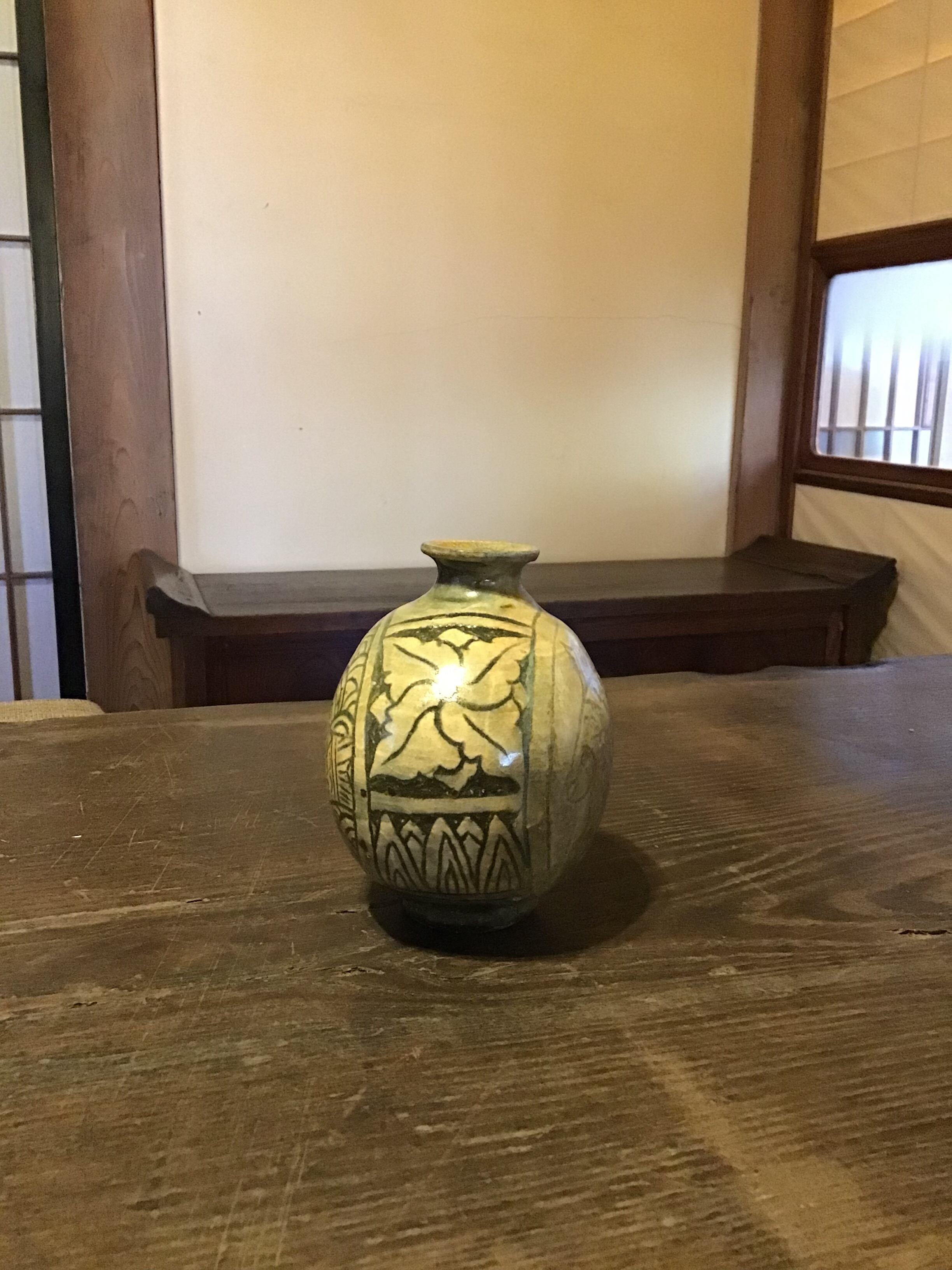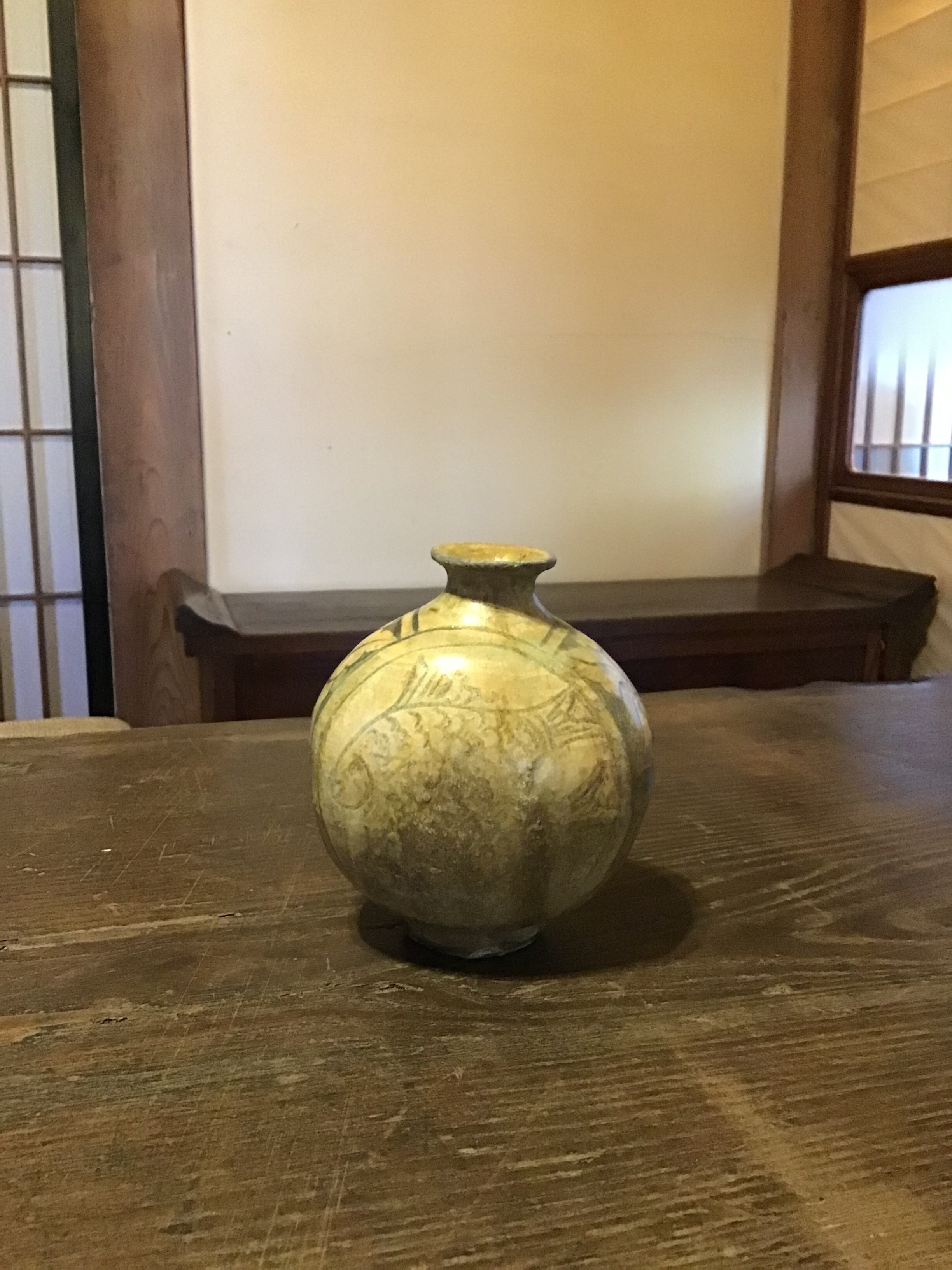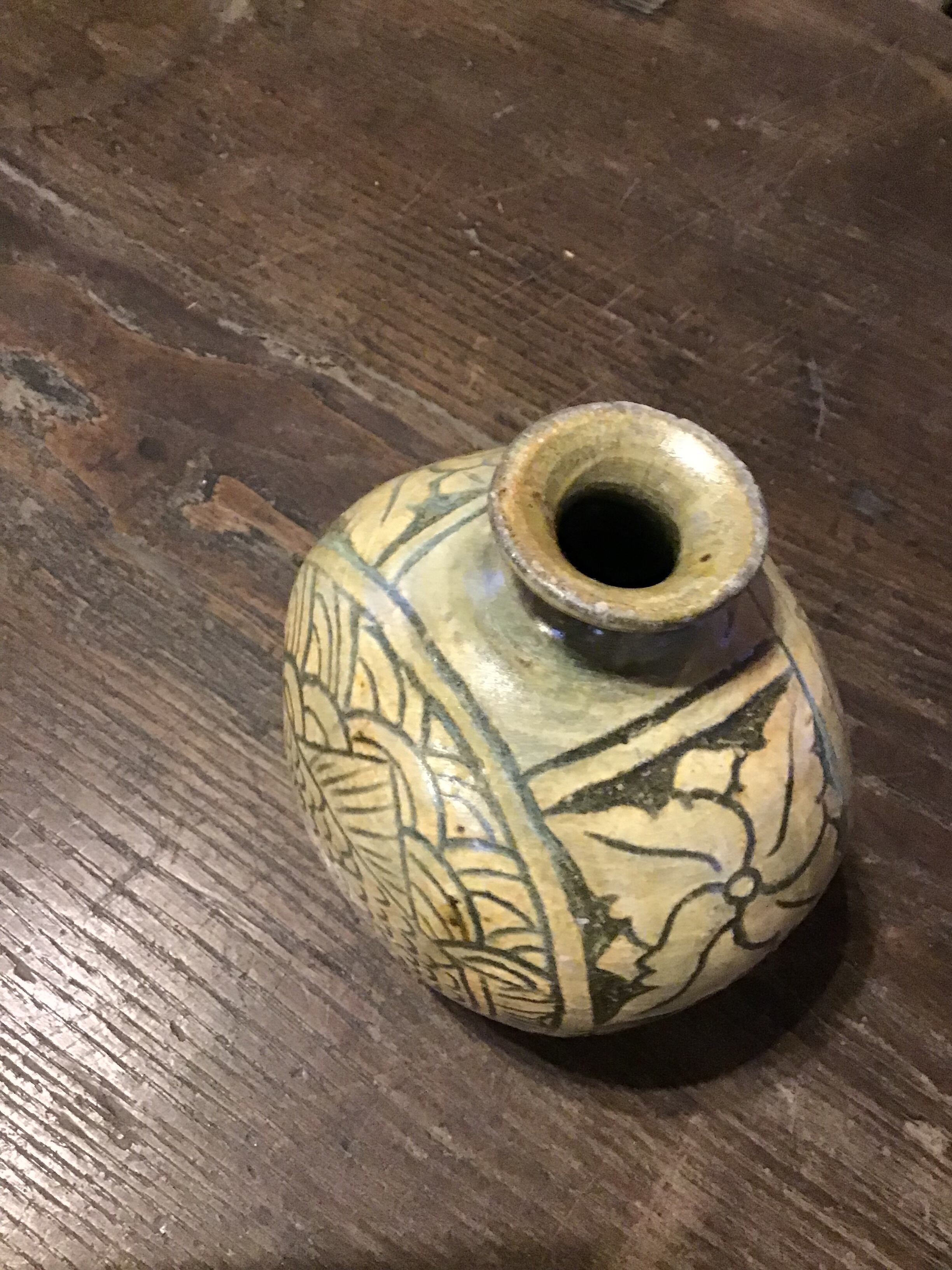 掻き落としという技法が用いられ、全体に施された白化粧から版木を彫るように描かれる独特な技法となっております。朝鮮李朝時代にその本歌がございますが、紋様も様々です。