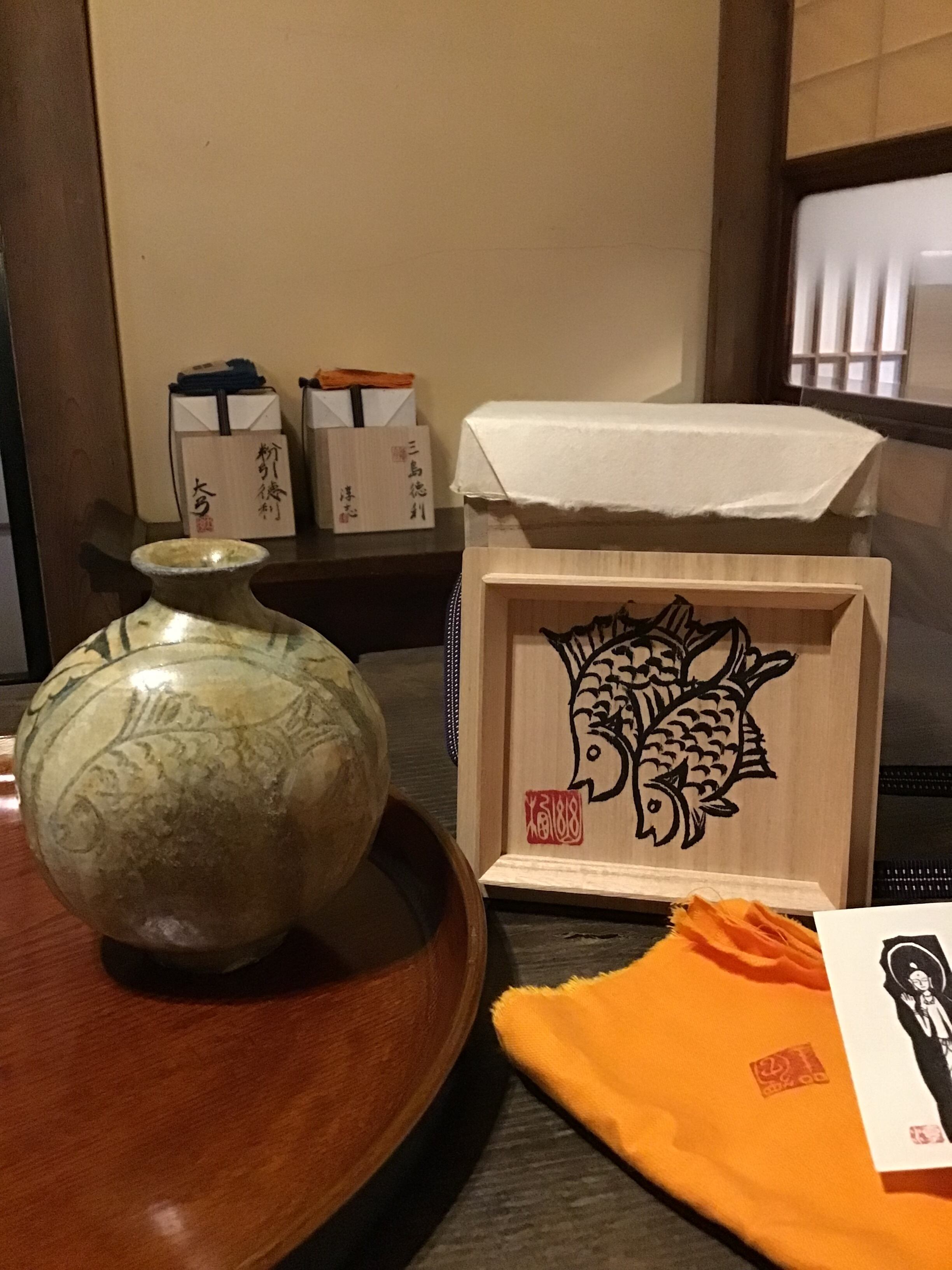 まるで流れに乗る魚にも見えます。反対側はヒラメが配され愛嬌もございます。